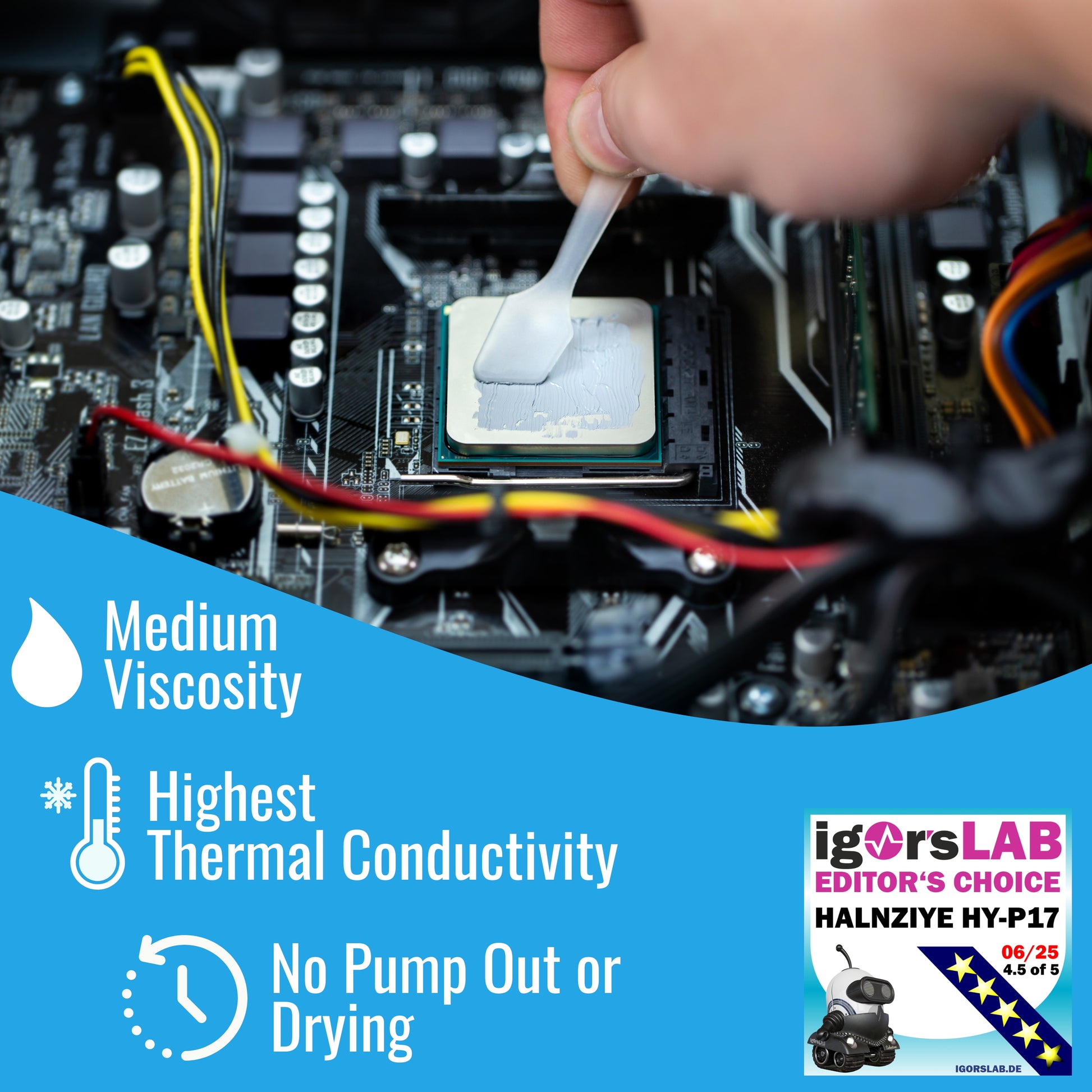 Introducing the Halnziye HY-P17, an extreme thermal paste that hands-down beats the competition like the PTM7950 PCM as tested by Igorlabs. Now available in India, get your hands on the best thermal paste with free express shipping. Stable over a wide range of temperatures between -30 and 130 °C, the HY-P17 is ideal for use in cooling components of PCs such as CPUs and GPUs.